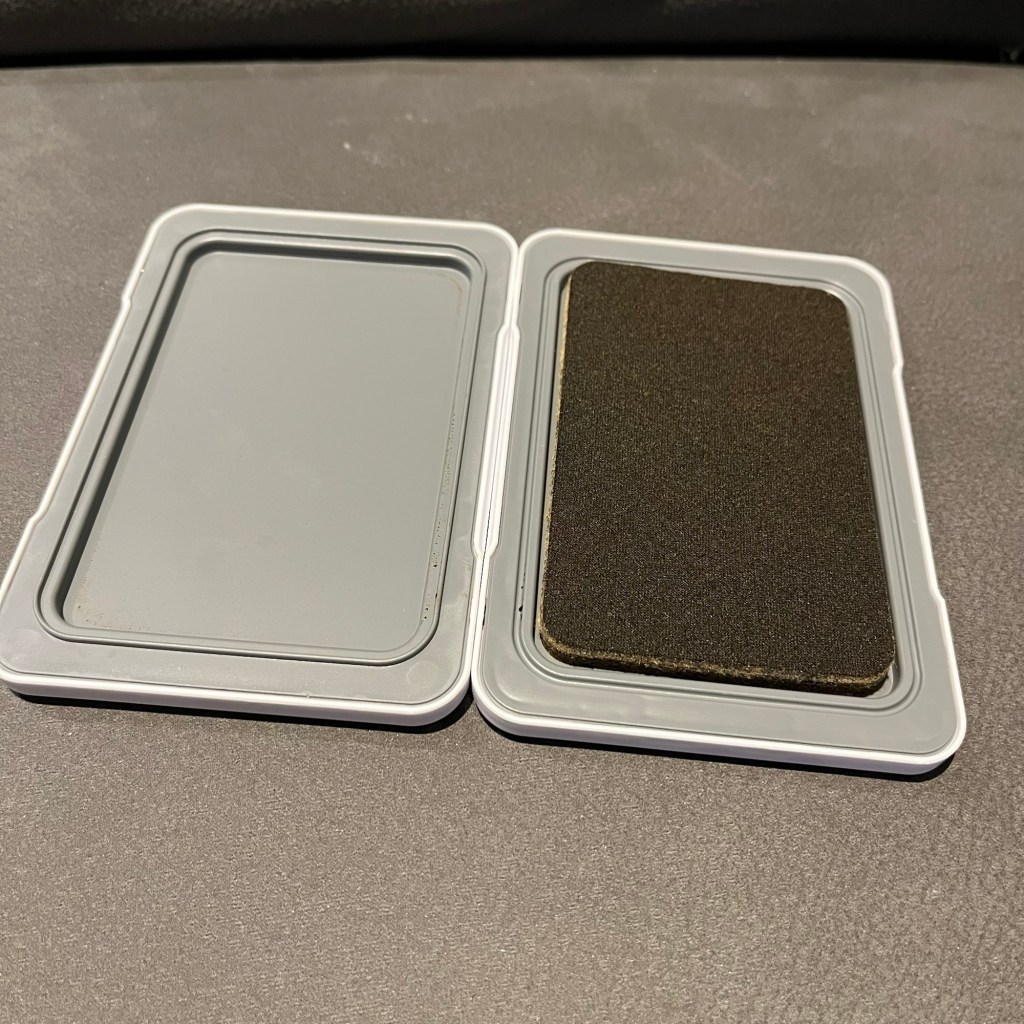 Ze kunnen ook op elkaar gezet worden en plakken dan ook magnetisch aan elkaar. Ze zijn wat langer en minder breed dan de huidige inktpads. Ik heb er nog niet mee gestempeld.