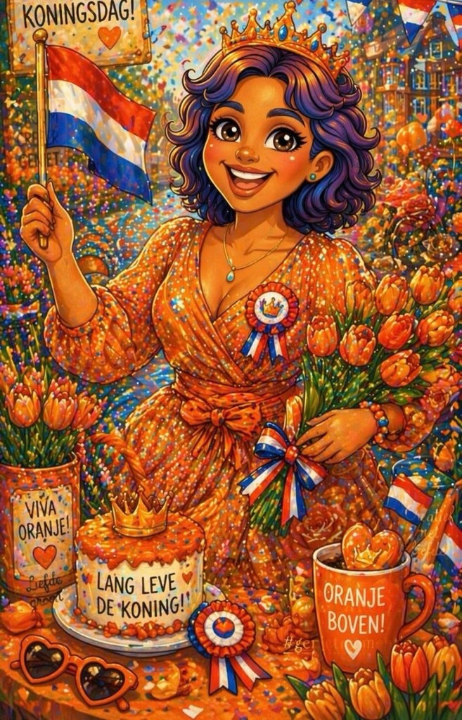Maandag was het koningsdag en die begon bij ons al om half zes. En ik sliep pas om half 3 dus kort nachtje. Maar heerlijk om Lynn bij ons te hebben.