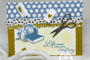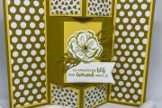 Deze keer ben ik begonnen om restjes Dsp te voorzien van een scheur randje. Ik stanste een Dekled Rectangle uit. Deze voorzag ik van wat kleur ( Wild Wheat) met een mini Blending Brush. Ik had de basiskaart ook van Wild Wheat gemaakt (14,5 cm bij 21 vm scored op 10,5 cm) en daar eerst de Basic White rechthoek opgeplakt. Toen de tekst gestempeld in Boho Blue. Ook de stansmachine […]