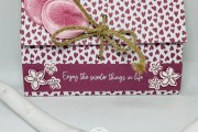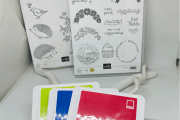 Deze week wil ik de bundel Een rondje gelukwensen in de hoofdrol zetten. Zo’n mooie bundel! Ik heb drie In Colors van 2022-2024 gebruikt: Sweet Sorbet ( ook het cardstock gebruikt voor de basiskaart), Parakeet Party en Orchid Oasis. Omdat ik nog iets miste heb ik de vlinder uit de stempelset Happy Hedgehog gebruikt. Ik heb de halve bloemen krans stempel gebruikt en er rondjes mee gestempeld op een mat […]