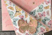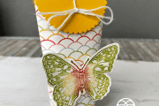 Dit kaartje had ik gemaakt als voorbeeld voor de dames om hun de Faux Tiles techniek uit te leggen. Met mijn Scoring board heb ik iedere 1 inch gescoord verticaal en horizontaal. En daarna met de Stamparatus de Butterfly Brilliance erop gestempeld in Tahitian Tide. Tekst komt uit de Samen Sterk stempelset. Ik heb ook de Double Oval pons gebruikt en natuurlijk de Gouden vlindertjes weer voor de Blingbling. Omdat […]