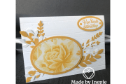 De moeder van een van mijn beste vriendinnen is ziek en daarom heb ik dit kaartje voor haar gemaakt. Een kaartje in zonnig Bumble Bee geel. De mooie roos komt uit een reststukje van een vel Flowers For Every Season Dsp. Ik heb de Stitched Dies gebruikt en de Layering Ovals. En rest stukjes Bumble Bee en Whisper White cardstock. De basiskaart van Whisper White heb ik eerst door de […]